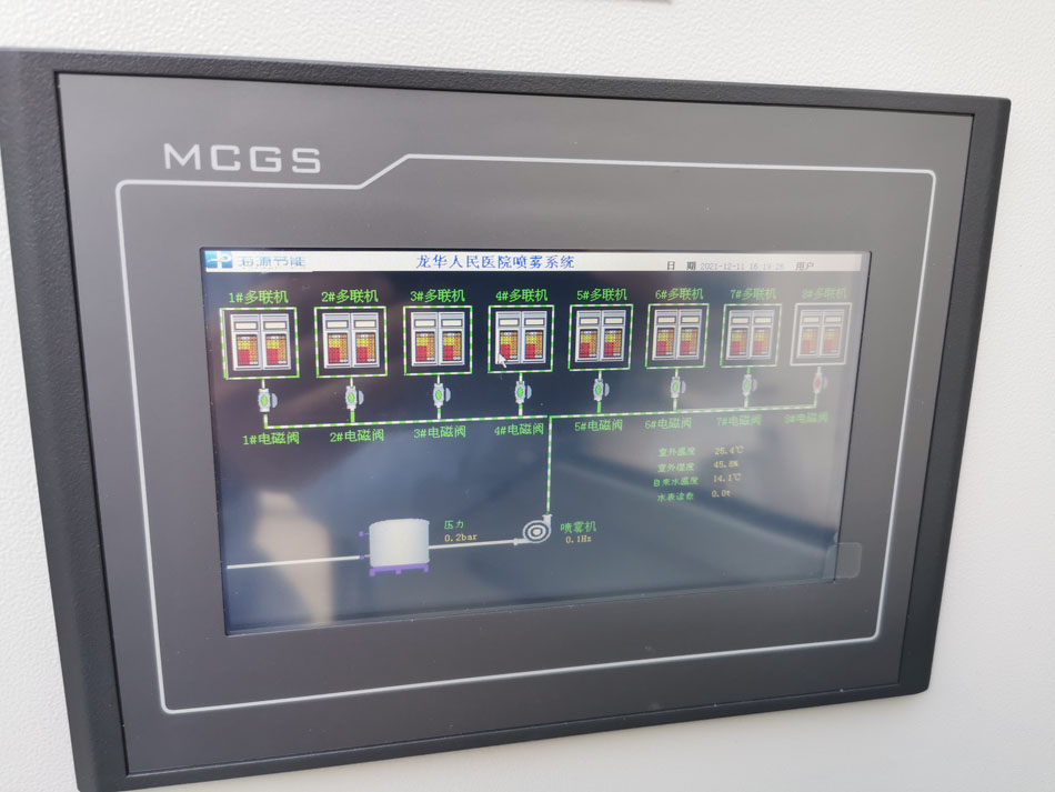噴霧機組自動高壓噴霧加濕機組為數(shù)顯變頻控制二路輸出,采用進口壓縮泵;由水過濾、水溫控制(選裝)、水位控制、恒壓供水、智能儀表、濕度傳感器、高壓電磁閥、高壓專用銅管、防濺式進口噴頭等組成的機電一體化產(chǎn)品。
