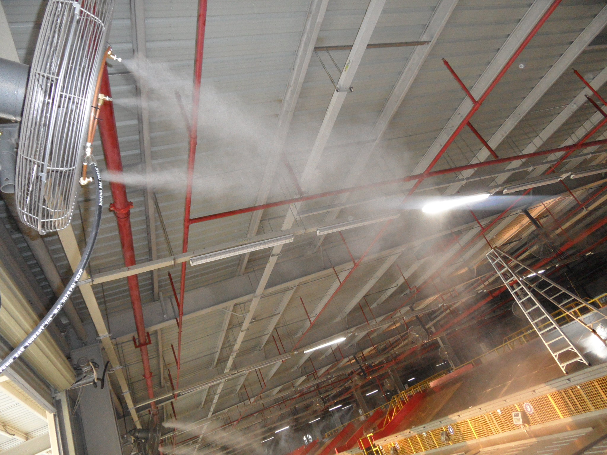 鐵皮廠房噴霧降溫工程全方位多功能: 降溫、造景、加濕、防塵、防靜電、除臭、消毒、噴藥、防疫、驅(qū)蟲、驅(qū)蚊.