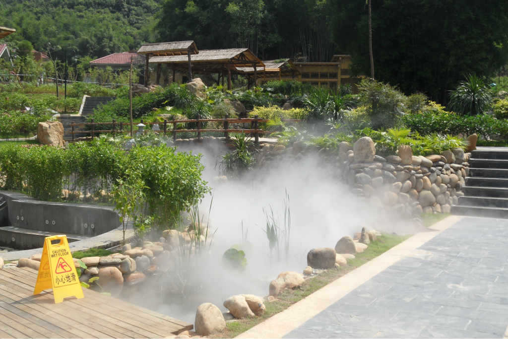 溫泉噴霧景觀人造霧產(chǎn)品全方位多功能: 降溫、造景、加濕、防塵、防靜電、除臭、消毒、噴藥、防疫、驅(qū)蟲(chóng)、驅(qū)蚊.