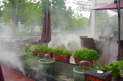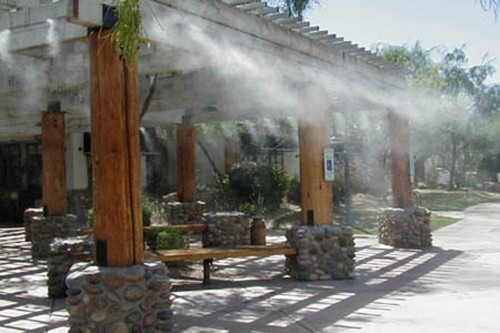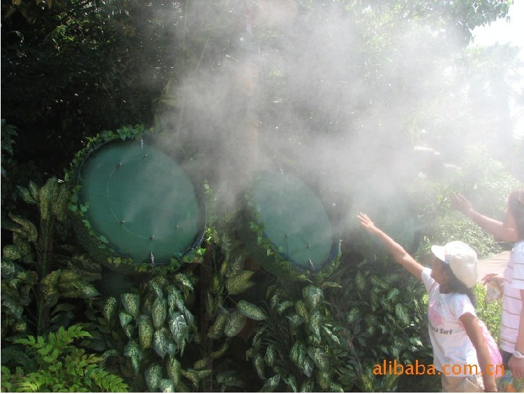 冷霧樹是應(yīng)用水對大自然氣候調(diào)節(jié)的原理,采用高壓使水滴霧化,水通過霧化系統(tǒng)以極細(xì)微霧化狀態(tài)噴出,充分與空氣混合,形成霧化粒子漂浮在空氣中,利用水的蒸發(fā),降低環(huán)境空氣的濕度。人造水霧在園林中的運用提高了景觀的視覺效果;增加空氣濕度,讓游客感覺空氣涼爽舒服;同時有助于景觀內(nèi)花卉植物的生長;夏天能起到防暑降溫的效果,讓園林成為避暑觀光的好去處.